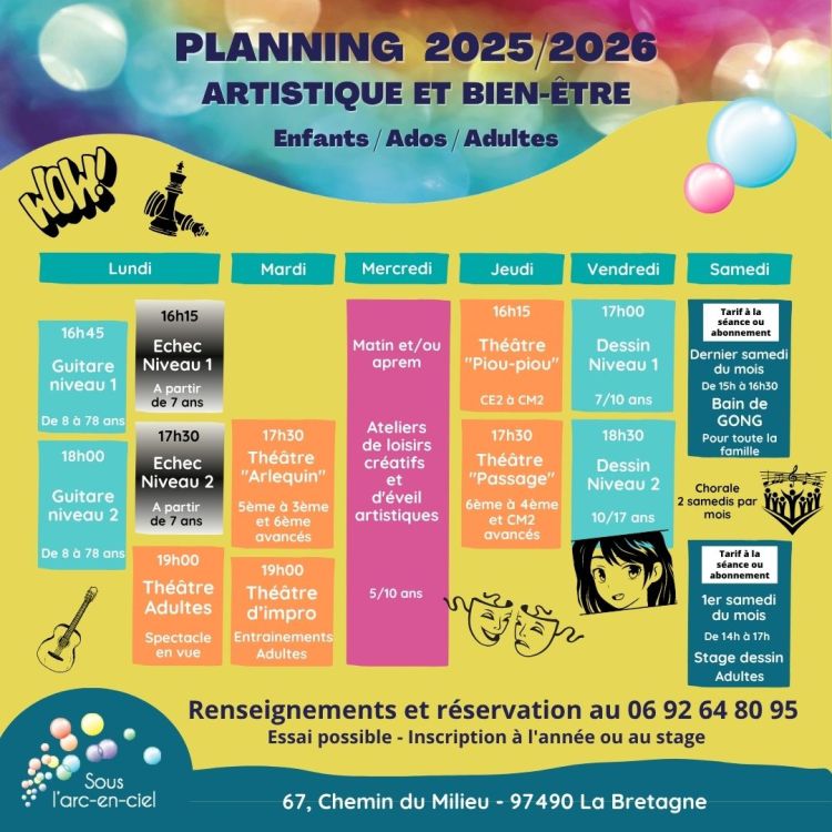 Les ateliers après l’école, les ateliers du mercredi, les ateliers et les stages pendant vacances et les interventions dans toutes structures … la proposition artistique est complète.