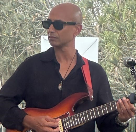 On attend un chouette texte qui arrivera bientĂ´t. Mais on sait dĂ©jĂ que David est originaire de Bras-Panon qu’il est le guitariste et parfois bassiste de Davy Sicard. Il a intĂ©grĂ© le groupe de Davy d’abord sur les tournĂ©es mĂ©tropolitaine puis, la RĂ©union devait lui manquer et il est rentrĂ© en intĂ©grant la troupe locale de Davy et contribue aux scènes internationales. Il est professeur de guitare depuis quelques annĂ©es . On sait qu’il pratique le Yoga aussi depuis longtemps ce qui lui permet d’avoir une grande patience et une Ă©nergie zen qu’il est bien chouette de cĂ´toyer.